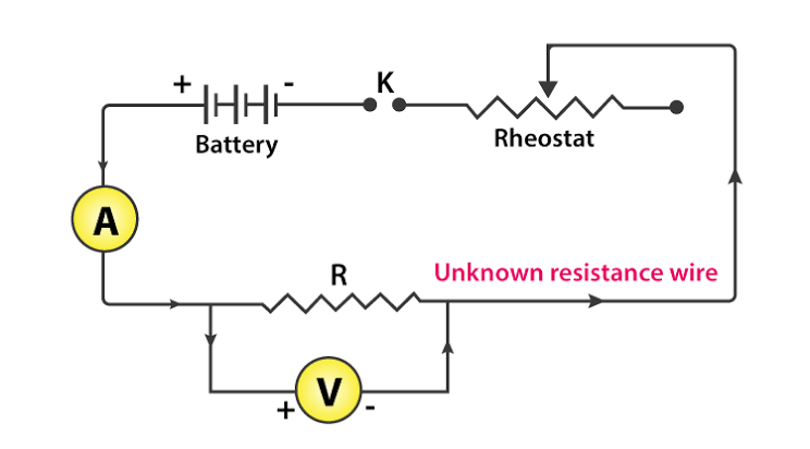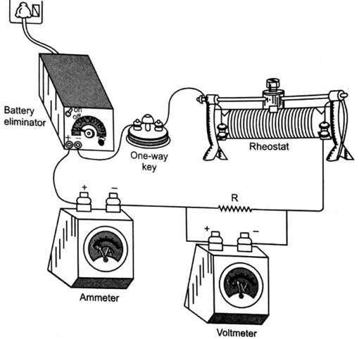 Two resistance wires, a voltmeter (0-3)V and an ammeter (0-3 se) A of appropriate range, a battery/battery eliminator, a rheostat, a meter scale, a one-way key, connecting wires, and a screw gauge.